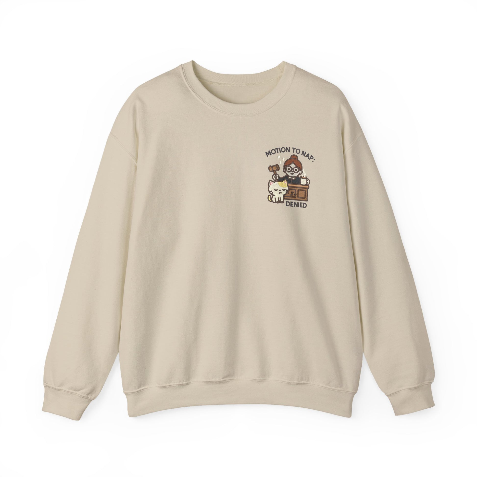 Your favorite courtroom just got cozier. The Motion to Nap: Denied crewneck is made for every hardworking paralegal, attorney, or law student who runs on caffeine and deadlines.