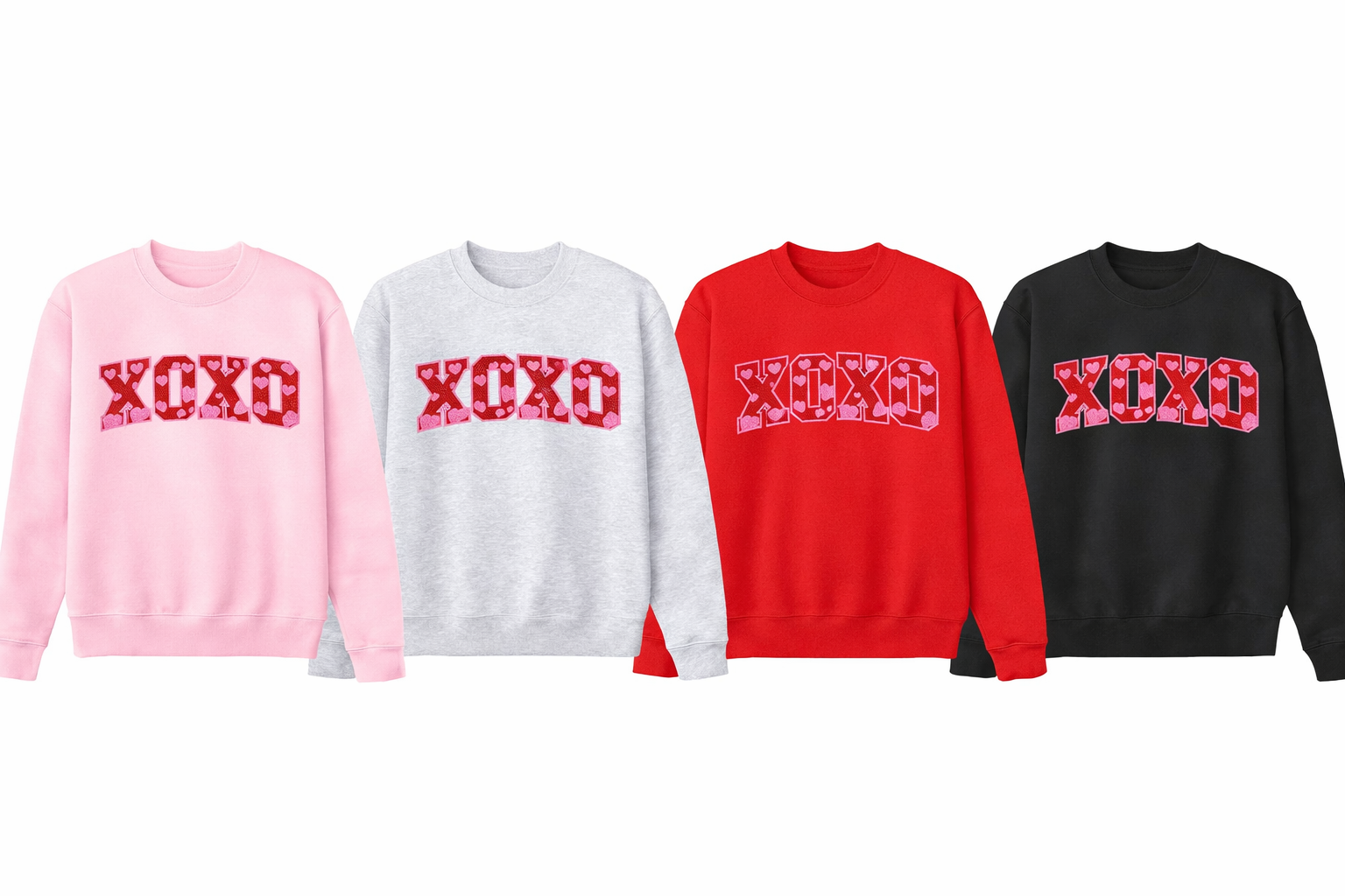 The XOXO Varsity Valentine Crewneck features oversized block lettering filled with heart details, giving classic Valentine vibes a fun, sporty twist. It’s the perfect mix of playful and cozy — ideal for statement outfits and matching moments.
